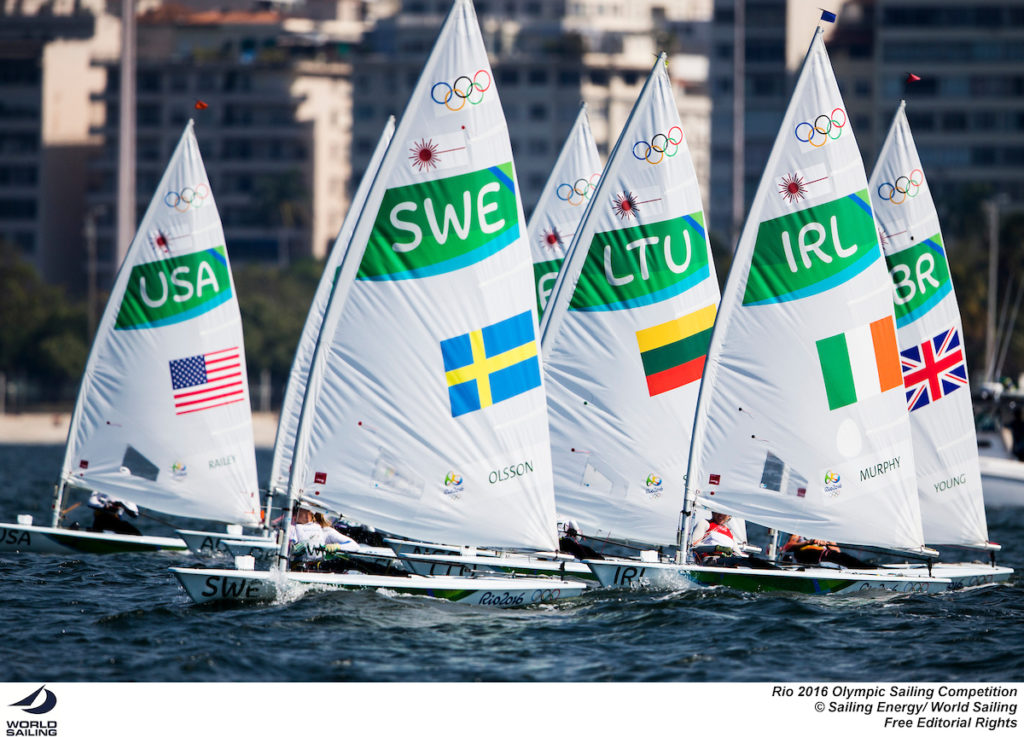 The Rio 2016 Olympic Sailing Competition featured 380 athletes from 66 nations, in 274 boats racing across ten Olympic disciplines. Racing was held August 8-19 with 217 male and 163 female sailors racing out of Marina da Gloria in Rio de Janeiro, Brazil. Competition was held across seven race areas on the ocean and Guanabara Bay.