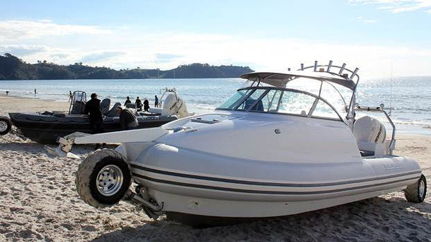 It is the new Sealegs 7.7m boat with wheels, an amphibious craft that can drive down your driveway, across the beach, and into the water, changing from a sturdy, all-terrain vehicle into a powerboat at the touch of a button.
