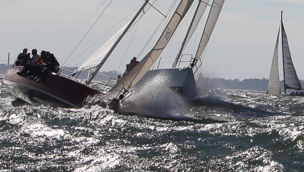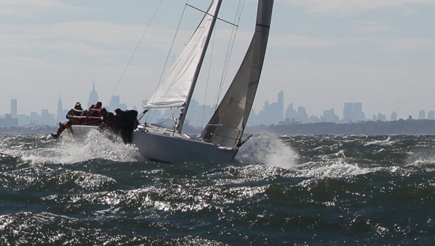 As a result of a stationary low, strong northeast winds blew for three days before the regatta as well as for the two days of racing, making conditions extreme – even for experienced Long Island Sound racers. After two races were sailed on Saturday in winds blowing from 22-30 with higher gusts, the race committee sent the dwindling fleet back to the harbor in hopes of more benign conditions the next day. But on Sunday the low pressure system still refused to budge and conditions remained the same.