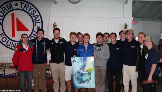 Georgetown sailed with Richard du Moulin on his Express 37 LORA ANN in the 10-boat PHRF division and the Charleston team sailed on Austin Fragomen’s J/105 WARLOCK. University of Michigan sailing on Andrew and Linda Weiss’s brand new Sydney 43 CHRISTOPHER DRAGON in the IRC division also had two firsts, but had a lower winning percentage and were scored second overall. Third overall went to one of the three teams from Massachusetts Maritime sailing Rick Lyall’s STORM in the 15-boat J/109 fleet.