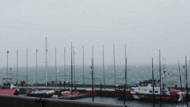 The 29er and 4.7 fleets were held on shore due to conditions.