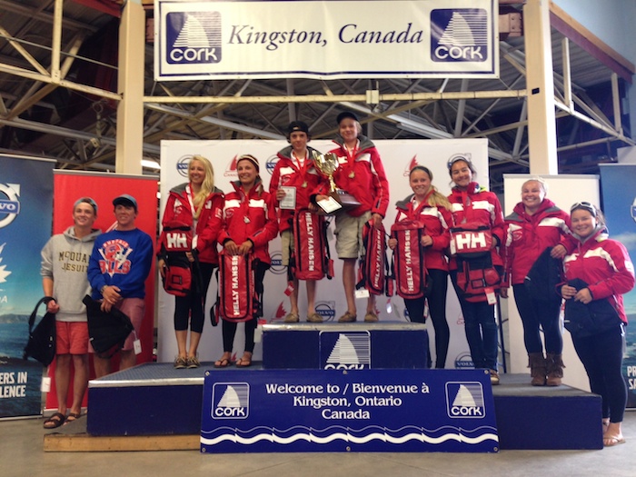 Kingston, ONT (August 14, 2014) – The fourth and final day of the Sail Canada Youth Championships at CORK International provided yet another day of strong Kingston breeze in the 15-24 knot range. Hitting the water first for a 1030 start was the 29ers, followed by the four other fleets at 1100.
