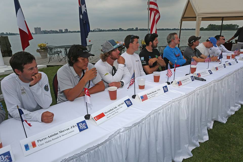 Detroit, MI (August 21, 2014) – In the first of four days of match race sailing at the 2014 Detroit Cup, Australia’s Sam Gilmour and his Neptune Racing Team from Australia have taken the early lead. Gilmour leads a field of twelve teams from six countries racing here through Sunday in this ISAF Grade 2 event in this second stop of the USA Grand Slam match racing series.