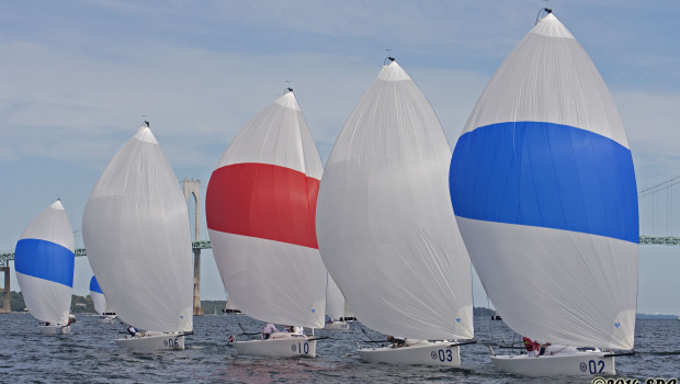 Racing for the U.S. Qualifying Series for the New York Yacht Club Invitational Cup presented by Rolex will continue tomorrow at 10:30 a.m., on the East Passage of Narragansett Bay, and run through Saturday afternoon. After Thursday’s racing, the top six teams in each qualifying group will move to the Gold Fleet, which will sail in J/70s on Friday and Saturday. The remaining 10 clubs will battle for Silver Fleet honors in the Sonars.