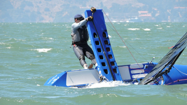 Richmond, CA (September 7, 2014) – The first day of the International Canoe World Championship saw defending world champion Chris Maas running a clinic, with a 1/3 of leg lead heading into the last reach leg before an escalating catastrophe changed the score.