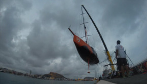 Team Alvimedica’s Volvo Ocean 65 is launched back into the water after being out for pre-race maintenance for two weeks.