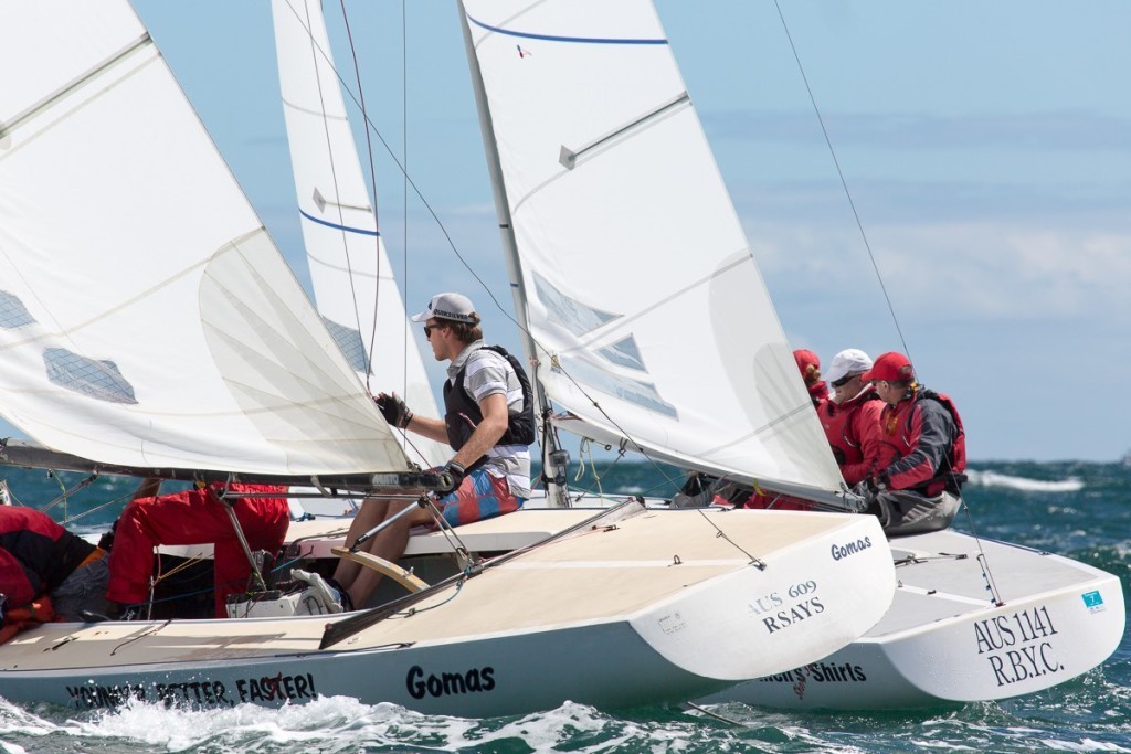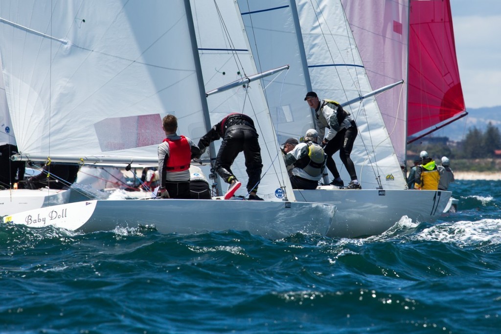 Baby Doll is another crew to be in the mix for title. Noel Drennan, Richie Allanson and Andrew Gavenlock are all part of the greater North Sails organisation and do know the pointy end from the blunt. Drennan, who is also known as ‘Nitro’, commented of yesterday’s unfortunate Black Flag, “No. It wasn’t ideal. There is time for two more races and anything can happen from here. The longer term goal is Hong Kong (2015 Etchells World Championship) and it is similar in terms of seaway, but thus far the Adelaide sea breeze has been a touch absent at times and shifty too.”