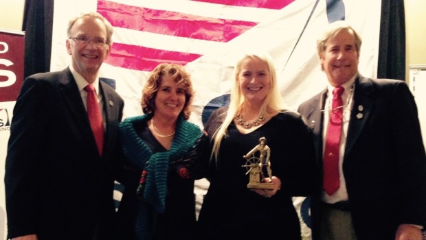 Photo: (from left to right): US Sailing President Tom Hubbell, US Sailing Training Committee Vice Chair & Nominator Charlie Arms, Oakcliff’s Elizabeth Shaw, award presenter and Chairman of the US Sailing Training Committee Richard Jepsen.