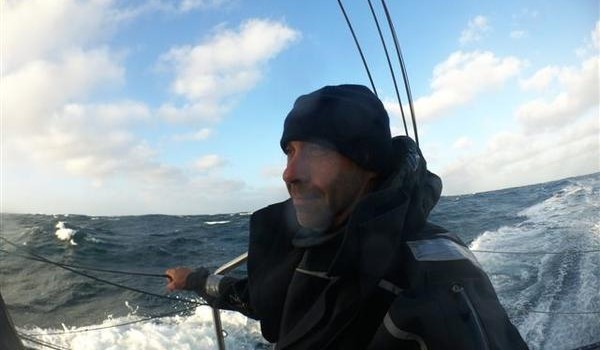 Cheminées Poujoulat were in 23-25kts of W’ly wind today, co skipper Jean Le Cam reaffirming how the combination of big, unruly seas and gusty breezes was making life testing for Stamm and Le Cam.
