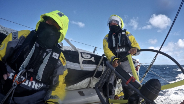 Matt Knighton, Onboard Reporter on Azzam, has just given his view, “Team Brunel have worked down throughout the day to be sitting right on top of our line and they’re now 36 miles directly on our bow in a good position. We expect the wind to build ahead and so the ‘rich will get richer’ at this point. Same goes for Team Alvimedica, though a small victory today was had when we took a degree of bearing out of them as they sailed a higher course to ours. Still, we’re happy to see the pack of three in the back. We’ll continue eyeballing them closely, though the racing won’t really begin until we round Cape Horn we expect.”