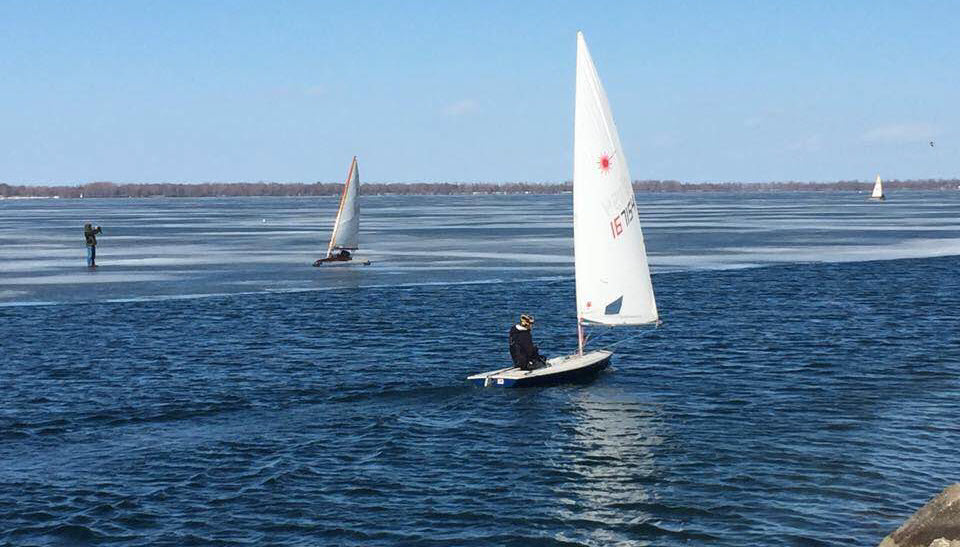Sailing and iceboating on Lake Erie, on Presque Isle Bay in front of the Erie Yacht Club at Erie, PA. Photos by Alex Miller and Jon Orlando.