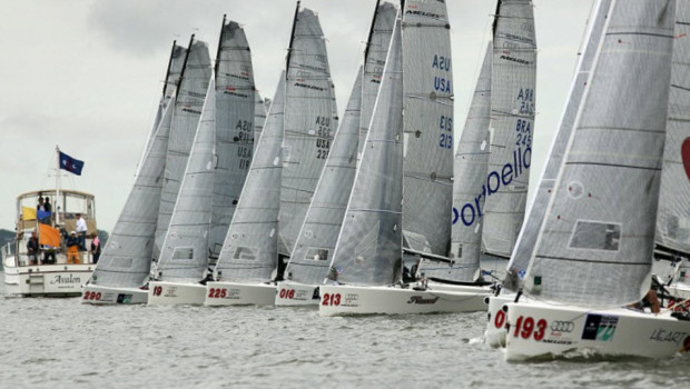 Charleston, SC (April 17, 2015) – Opening day at the 2015 U.S. National Championship held in conjunction with Sperry Charleston Race Week (CRW) granted the Audi Melges 20 fleet three nice races with a stab at a fourth. Under overcast skies and light rain teams went racing in 8-10 knots of breeze that fluctuated throughout the day due to the passing weather front. Blend tricky breeze with Charleston’s impressive current and you’ve got a perfect recipe for some very challenging yacht racing.