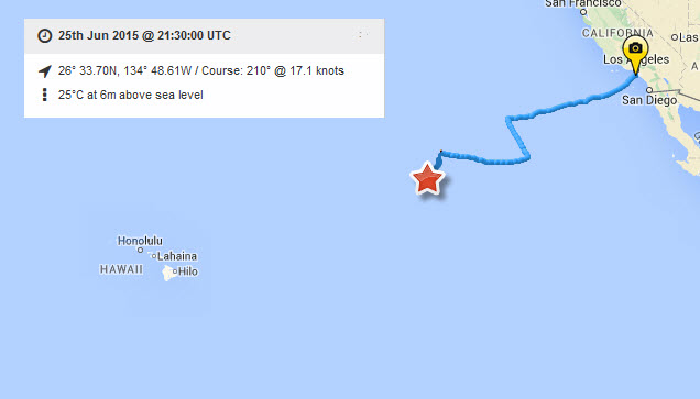 The team reports wind conditions have been less than expected, and they now anticipate arriving in Honolulu by Sunday or early Monday. They would have needed to reach Honolulu by 09:58:39 PDT on Saturday, June 27 to break the record.