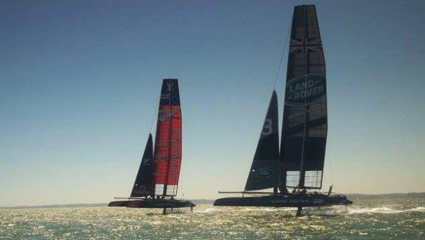 Portsmouth, UK (July 2, 2015) – Emirates Team New Zealand, the Challengers for the 34th America’s Cup who came so close to overhauling the defenders Oracle Team USA in 2013, took to the Solent in the foiling AC45 catamaran this week, lining up against home contenders Land Rover BAR.