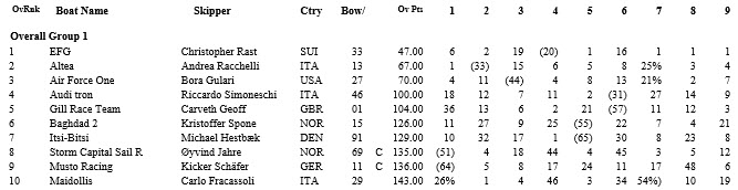Day Four Results (Top 10 of 95; 9 races, 1 discard)