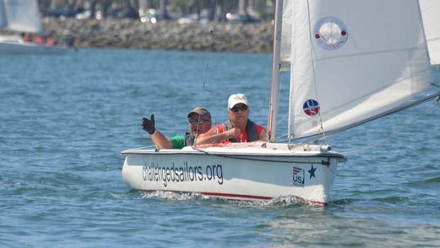 San Diego, CA (August 28, 2015) – After a postponement at the dock due to lack of wind, the RC notified the participants of the US Disabled Sailing Championship regatta that there was a consistent breeze. The wind stayed consistent most of the afternoon, but was very shifty. The race committee were able to get in 3 more races for all classes with a few close finishes.