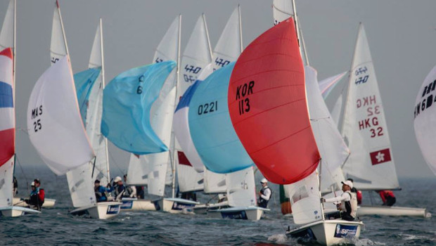 In the 49er, Kim Sungwok and Yang Hoyeob (KOR) are tied on ten points with Bongjim Chae and Kim Dongwook (KOR). The teams have four race victories apiece across the eight races over three days.