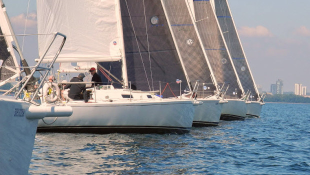 Eighteen teams competed in the J/105 Canadian Championship, held September 25-27 in Toronto, ONT. Terry McLaughlin’s team on Mandate dominated the event, winning eight of the nine races to take the title by 44 points over Peter McDermott Hall, with James Rathburn two points further back in third. Results.