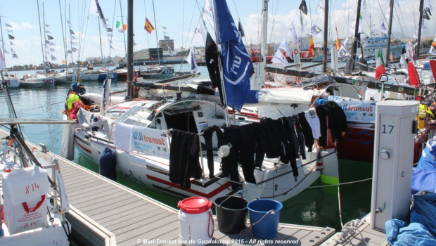 (September 30, 2015; Stage 1, Day 12) – The arrival pontoons for the Mini Transat – Îles de Guadeloupe that previously seemed strangely empty, with the notable exception of each new arrival, have been full of life since this morning. It is time to begin preparations for the second stage.