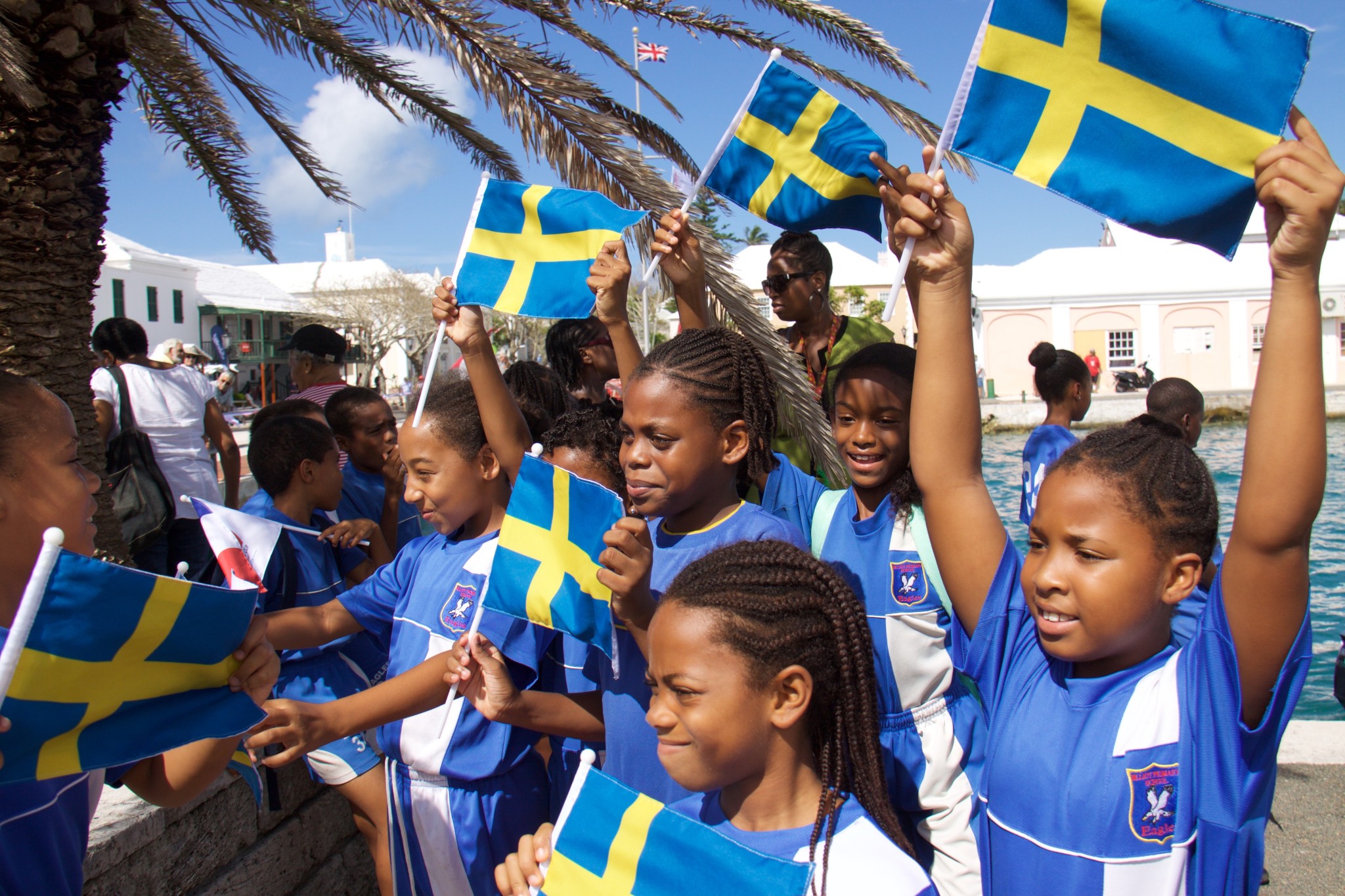(October 15, 2015) – It was Endeavour Day at the Louis Vuitton America’s Cup World Series Bermuda as over 550 students between the ages of nine and 12 were invited to help officially open the America’s Cup Endeavour Community Sailing Program’s location in the Historic town of St. George’s.