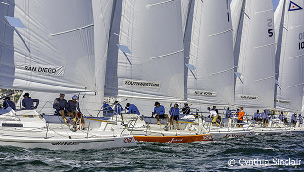 Defending champion St. Francis Yacht Club leaped to an early lead with excellent boat speed. They were able to cruise across the finish line for the Race 1 win. Race 2 shook things up as San Diego Yacht Club took first place, while New York Yacht Club made major improvements from 10th in the first race to 3rd in the second. Newport Harbor Yacht Club was unable to maintain their strong 4th place from the first race as they fell back to 12th in the second.