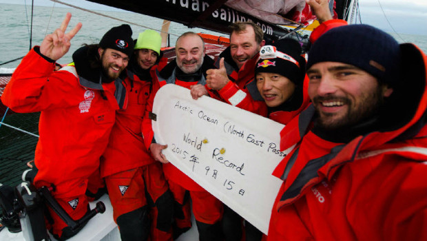 (November 2, 2015) – The World Sailing Speed Record Council reports the establishment of a new benchmark time for the 3240 nm Murmansk to Bering Strait via the Northern Sea Route. Guo Chuan (CHI) and 3 crew sailed the 97-foot trimaran China Quindao on September 3-15, completing the passage in 12 days 3 hours 8 minutes and 15 seconds. This will now be the time to beat for future record attempts.