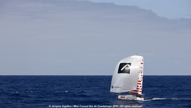 (November 11, 2015; Day 12) – When the Mini Transat leaders touch land in Guadeloupe, some will still have half of the Atlantic to cross before tasting a restorative ti punch, and meeting their friends and family. To top their misfortune, the trade winds which have blown vigorously so far, will weaken for a few days.