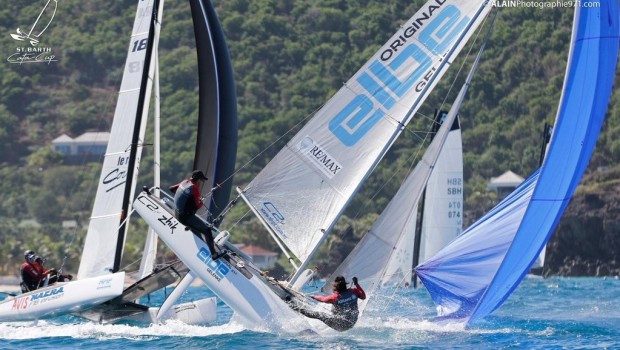 St. Barthelemy (November 23, 2015) – Regularity paid off for the Belgians, Patrick Demesmaeker and Olivier Gagliani, who flirted with the top 5 throughout the 8th edition of the St Barth Cata Cup. The final day concluded on Sunday with a race taking the contestants to Public Beach. It was tight right up until the end as the Belgians had a very small margin to win in the overall rankings. Had crew Orion Martin and Charles Gaté scored 1 and Belgians 4, the French would have won the St-Barth Cata Cup.