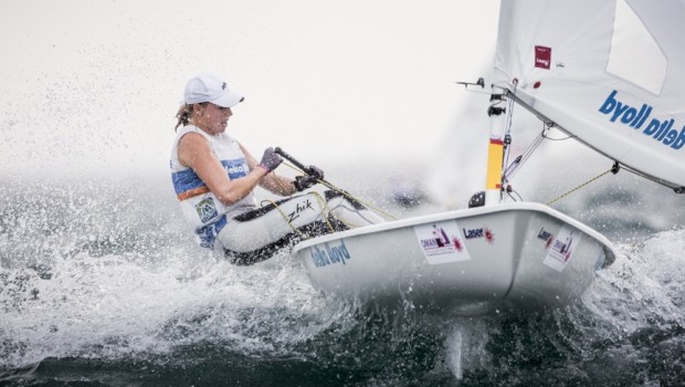 Number 1-ranked Evi Van Acker (BEL) had a poor first race of the day but learned from her mistakes and rounded the day off with a first. In race 1 she found herself in the middle of the start line and confessed she was not happy at all with her sailing.