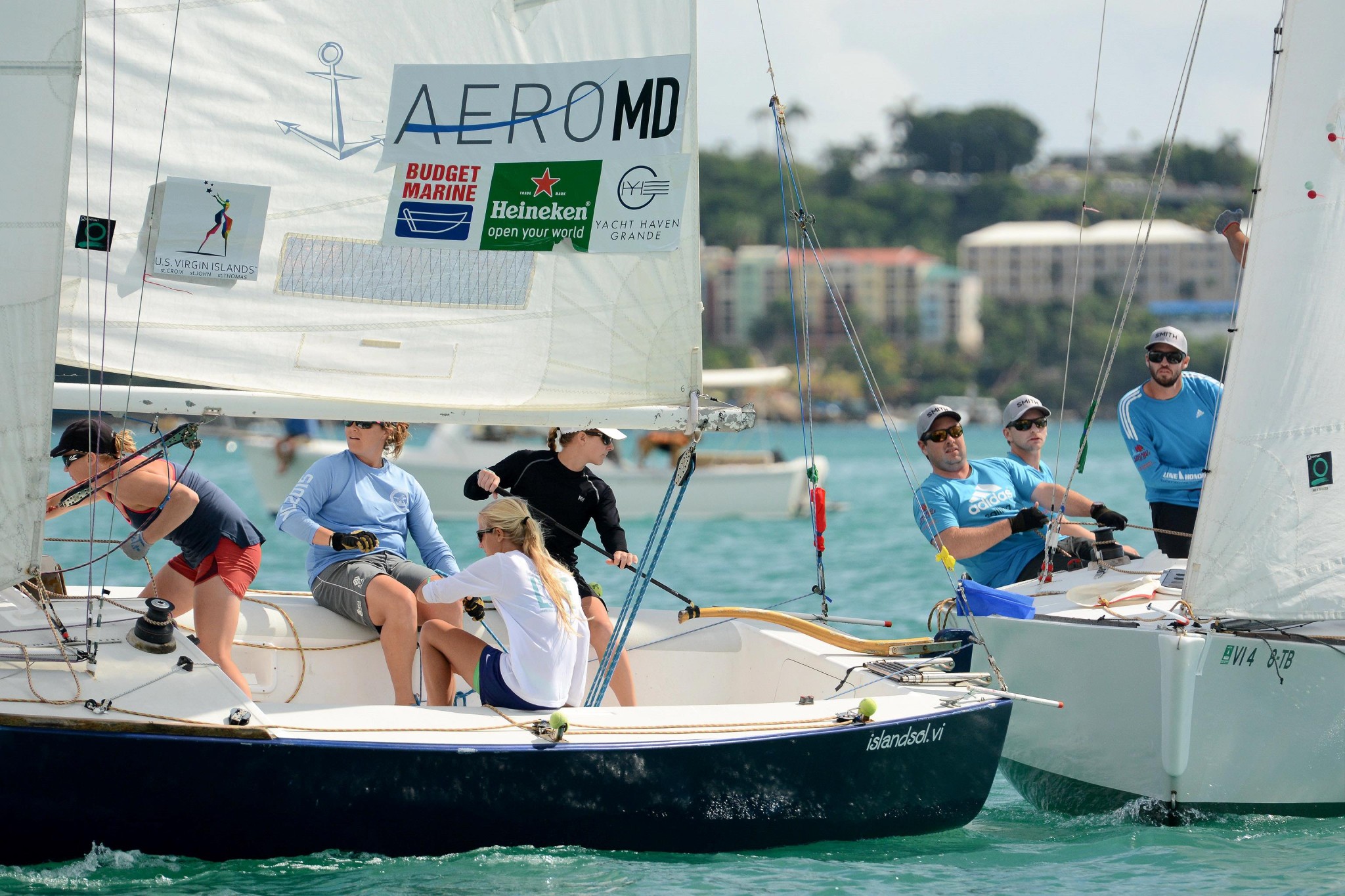 St. Thomas, USVI (December 6, 2015) – The USVI’s Taylor Canfield’s undefeated streak came to an end today, but it did not deter his team’s victory in the 7th Carlos Aguilar Match Race.