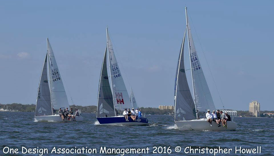 Carter White’s Sea Bags Sailing Team dropped to third place but is still in the mix, just two points behind Blind Squirrel. Hosted by the Davis Island Yacht Club in Tampa, Florida, 25 teams from across the United States, Canada and even Japan vied in winds between 6-8 knots with some higher puffs. Seven races have now been completed.