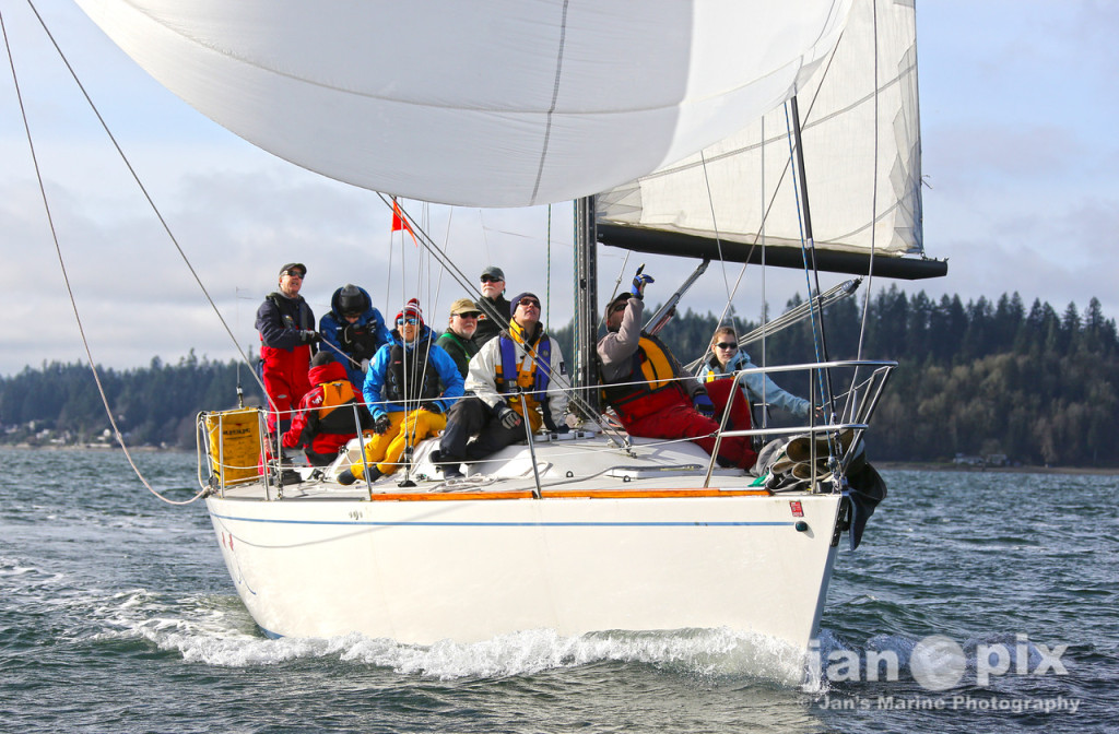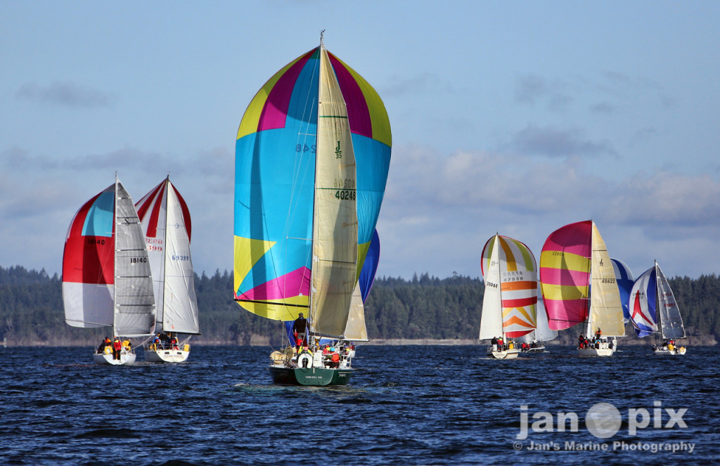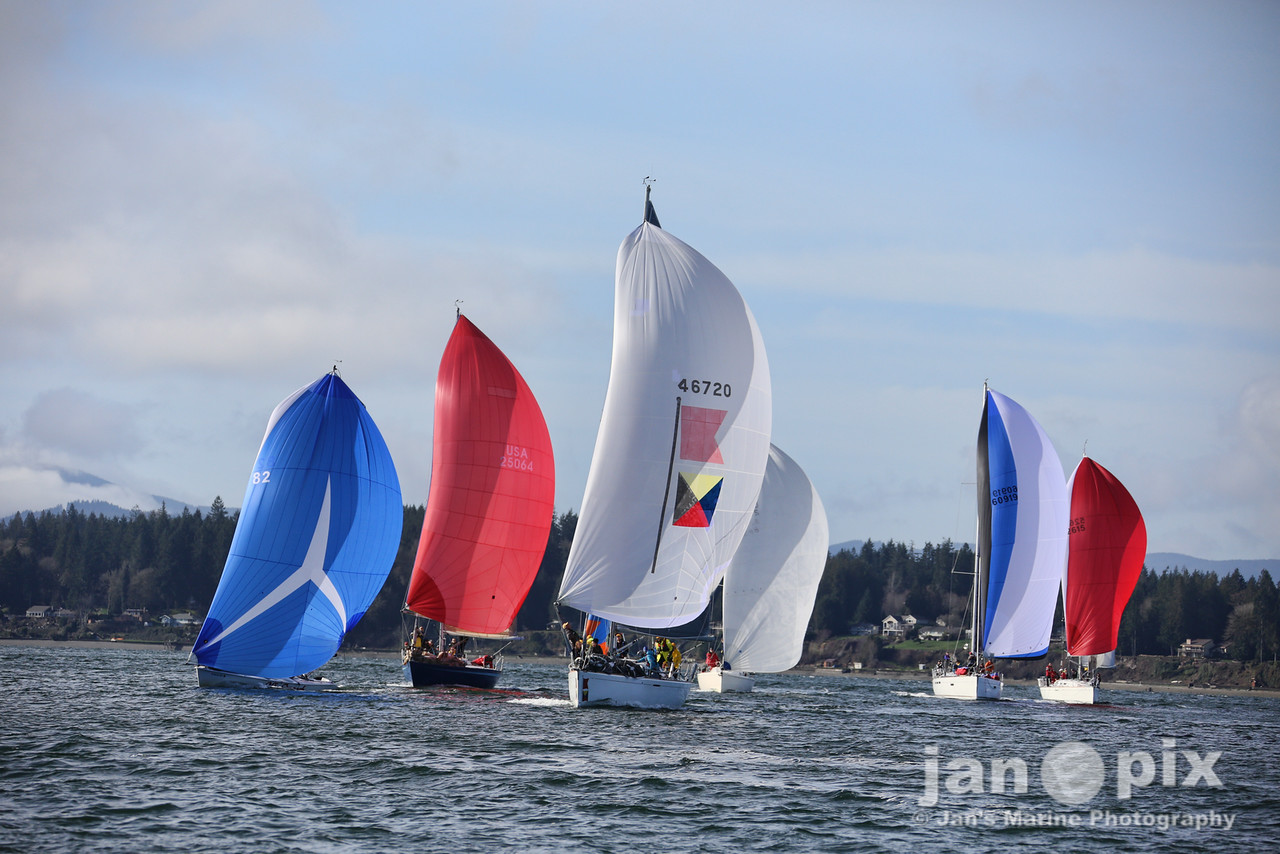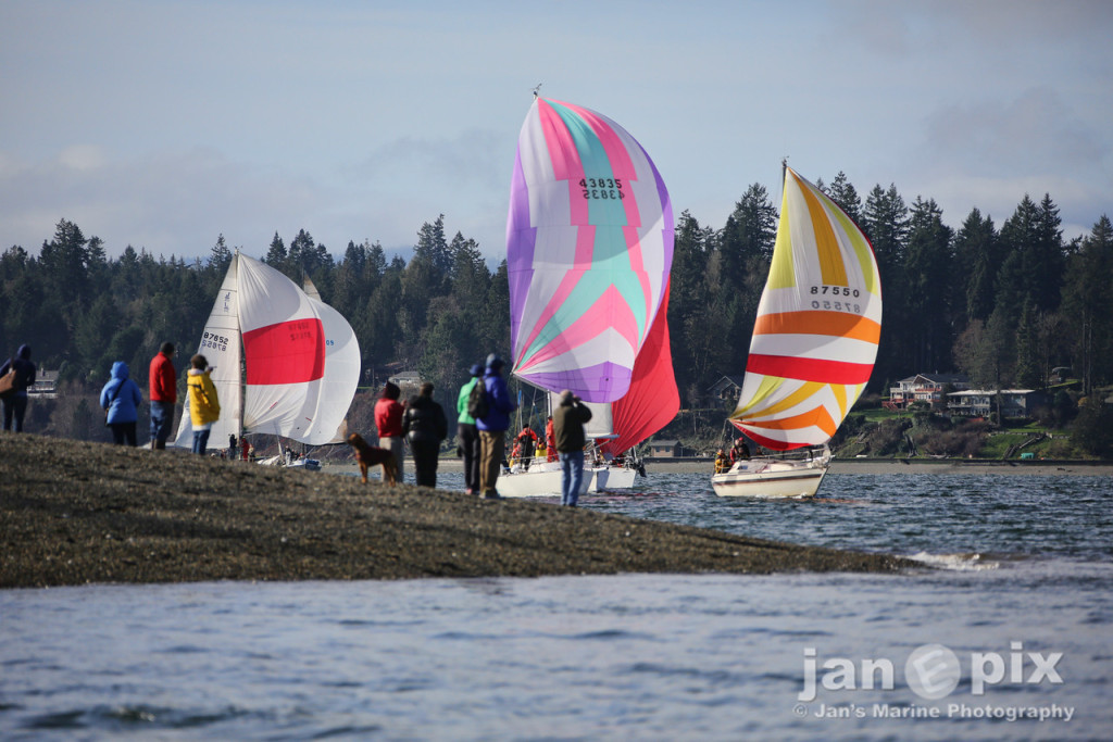 The 2016 Toliva Shoal Race on February 20 attracted boats from throughout Puget Sound. Many locals who only do one race a year do this one. The party the night before has a reputation in the Puget Sound sailing community as an event all by itself. The start and finish of the 36.8 nm race is between Olympia Shoal and the RC boat with the course then rounding Anderson Island, the Toliva Shoal Buoy, and the buoy in Balch Pass to port.
