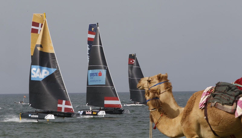 The only team to challenge Oman Air was the Danish SAP Extreme Sailing Team, who took spoils in the day’s opening race, with the duo of Jes Gram-Hansen and Rasmus Køstner out to make their mark early on in the season.