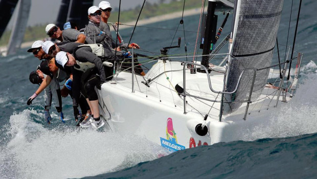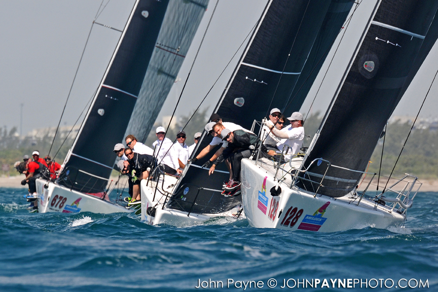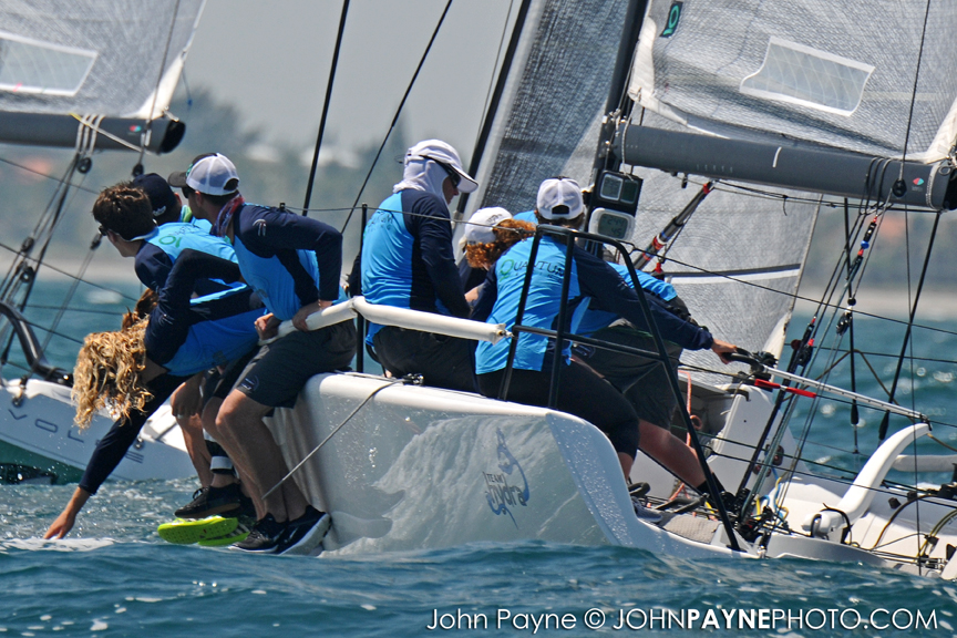 Ft Lauderdale, FL (April 3, 2016) – The final two races today concluded both the Melges 32 Lauderdale Cup and the three event Melges 32 Blue Water Series hosted by the Lauderdale Yacht Club. In winds approaching 15 knots, Dick DeVos along with his Volpe team of tactician Mark Mendelblatt, Scott Nixon, Sam Rogers, Drew Weirda, Peter Kinney, Erika Reineke and Mike Hill. posted two deuces to seal the win in both the final event and the series.