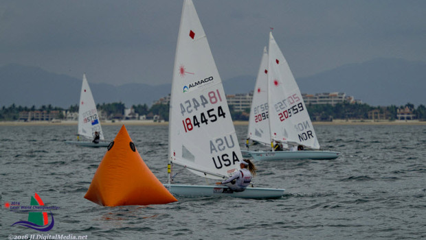 Nuevo Vallarta, Mexico (April 15, 2016) – Both qualifying fleets at the Laser Radial Woman’s World Championship completed only one of the two scheduled races today as the second race of the Blue fleet was abandoned when the wind died in the late afternoon. This race will be re-sailed tomorrow.
