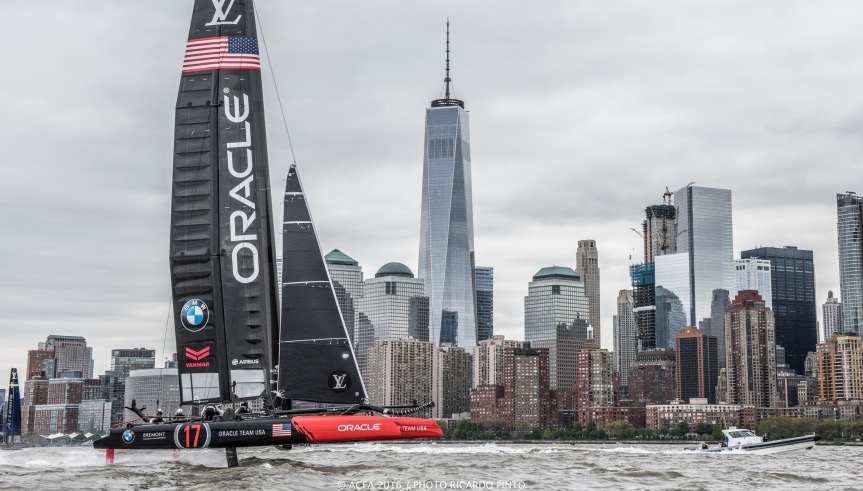 New York, NY (May 7, 2016) – Today is the day America’s Cup Class racing returns to New York Harbor. Racing for the famed trophy was held off New York from 1870 to 1920, but today the new era of foiling catamarans fly into town with the Louis Vuitton America’s Cup World Series.