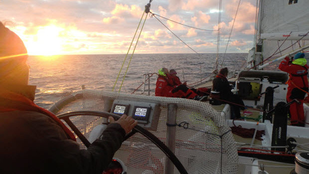 For the first time in days, all twelve boats are visible on the Race Viewer as none of the teams are in Stealth Mode. Garmin, which has moved up to fourth place given its proximity to the rhumb line, is still the closest inshore, and Skipper Ash Skett says they’ve been enjoying good speeds which has helped claw back a few miles.