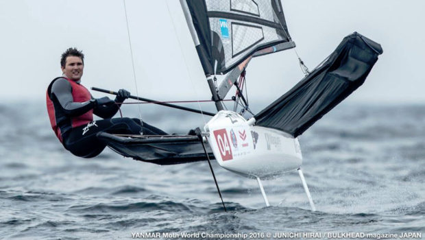 Hayama, Japan (May 25, 2016) – Today’ strong southerly winds on day two of the YANMAR Moth Worlds challenged the experts while others stayed ashore as the conditions had exceeded their limit.