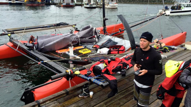 Team MAD Dog Racing’s charge north was impressive, and one that had many in the sailing world shaking their heads. “This will end badly.” was a word of warning from a skeptical expert in the know. The M32 was a high stakes gamble. A gust and a capsize and it would be game over. Short of a nearby tugboat there would be no way to get the big cat back on her feet. Their plan—ditch the rig, get her right side down and start pedaling. Each of them wore dry suits kitted out with life jackets, DSC marine band radio Personal Locator Beacons, and some inflatable noodles they could inflate to make it easier for rescue crews to see them. These weren’t maverick yahoos with a death wish, they took safety as seriously as they did their sailing. And while they never needed it, their ace in the hole was a mark of all pro.