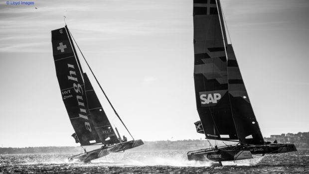 SAP Extreme Sailing Team bagged their second race win of the Act to go into the final day in 5th place, ahead of Land Rover BAR Academy in 6th and Sail Portugal – Visit Madeira in 7th. Vega Racing finish the day in 8th just one point ahead of Thalassa Magenta Racing, the Extreme Sailing Series’ first all-woman crew.