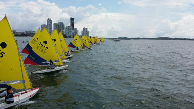 Thirty-six sailors representing eight countries competed at the 2016 Sunfish Youth World Championship, held November 18-20 in Cartagena, Colombia. With a strong daily current, near-perfect 6-12 knot winds and plenty of sunshine for all three days, Angelo Giuria of Peru dominated the event, winning with a 13 point lead over Andres Bocalandro of Venezuela in second. Clemente Seguel of Chile finished third. Sixty-one entrants will compete in the Sunfish World Championship on November 22 through 27. Full youth results.