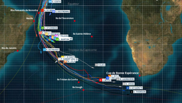 The following little group will be busy seeking out the wind. It may well be Jérémie Beyou, who decided to dive south, who comes off best… As for Yann Éliès (Quéguiner-Leucémie Espoir), he will be able to continue his route in the first front, which is gradually disappearing, meaning his speed will also drop off as the cloud masses melt away in the St. Helena high… We can imagine him closing the gap on his former Figaro rivals, but catching or overtaking them would be a different ball game.