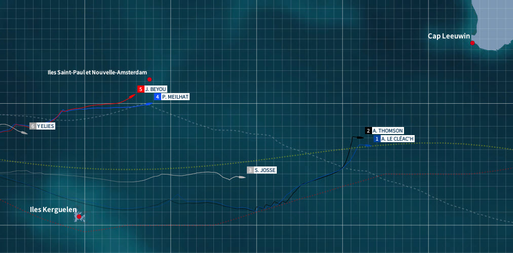 (December 3, 2016; Day 28) – In the last edition of the Vendée Globe, through the European winter of 2012-13, the head to head match race around the world was between François Gabart and Armel Le Cléac’h. Four years ago the South Indian Ocean saw the top duo stretch away from their pursuers.