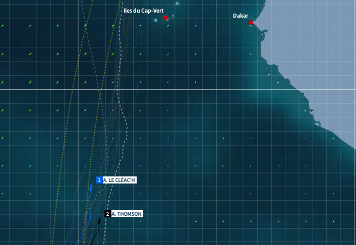 The pair, who have been locked in battle for much of the race’s 63 days so far, are still on record-breaking pace some four days ahead of the time set by 2012-13 winner François Gabart. There was little time for celebrating however – both skippers are now immersed in the Doldrums, a notorious band of constantly-moving low pressure, renowned for its ability to snare sailors. While Le Cléac’h’s lead is relatively comfortable is does not mean the pressure is off the 39-year-old Breton – he must forge a lone path through the Doldrums at the head of the fleet. Thomson, on the other hand, has the benefit of being able to assess his rival’s route and adjust his own accordingly to avoid potential pitfalls. If Le Cléac’h stumbles and is held up, even for just a moment, it could provide the opportunity Thomson needs to threaten his counterpart’s lead.