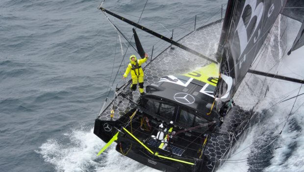 The British skipper delivered a timely warning to French skipper Le Cléac’h today when he smashed the world record for the greatest distance sailed solo in 24 hours (monohull up to 60 foot). Hugo Boss skipper Thomson maintained a staggering average speed of 22.4 knots in the 24 hours leading up to the 0800 UTC position update to notch up 536.8 nm. The distance breaks the 534.48 nm record set by François Gabart in the 2012-13 Vendée Globe that he went on to win, beating Le Cléac’h by just three hours.