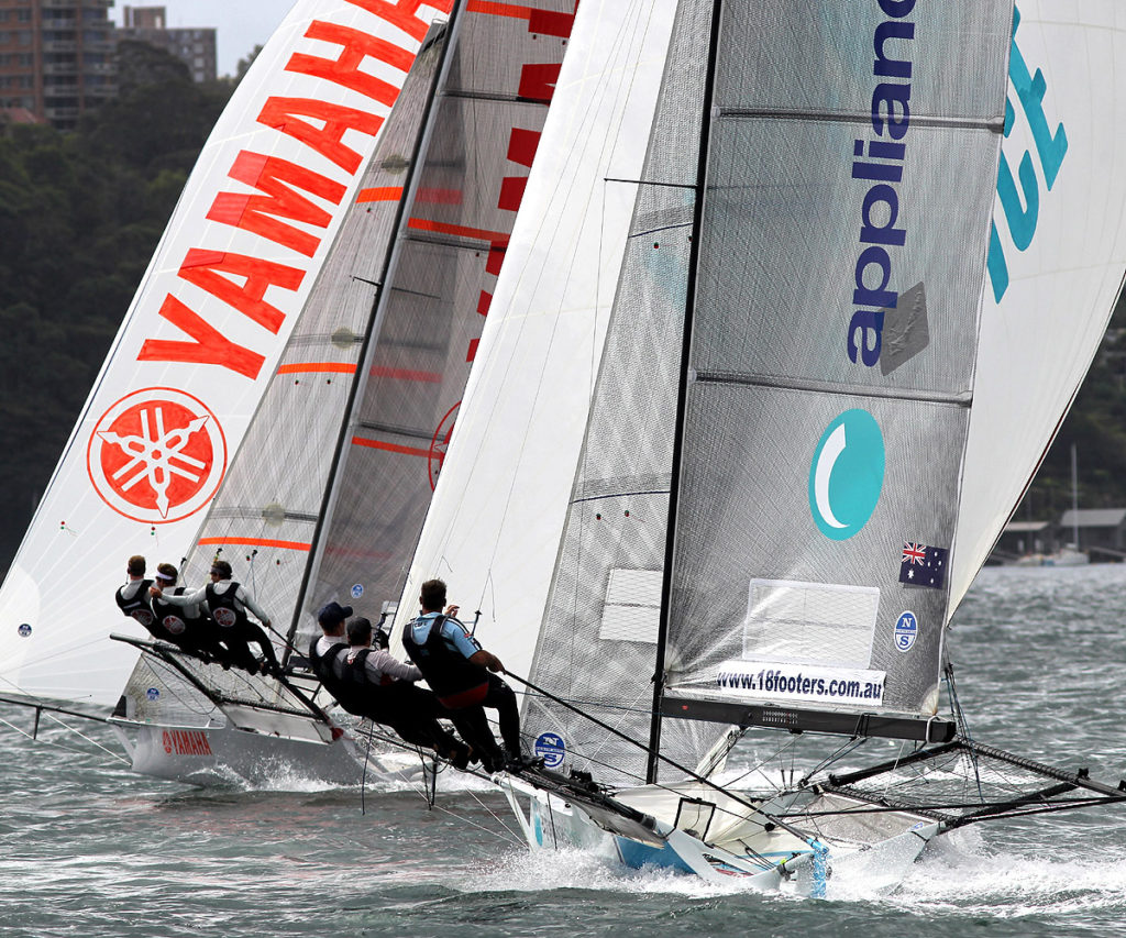 Positions at the head of the closely bunched fleet remained relatively unchanged as the skiffs raced down to the bottom mark.