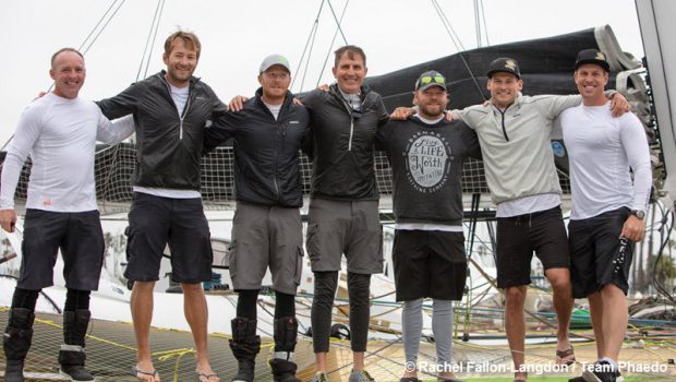 Pulling out in the fog from the Long Beach dock in California on May 12 was Lloyd Thornburg and his crew aboard the MOD70 Phaedo^3 headed towards the official start point of the Transpacific Record from Los Angeles to Honolulu, Hawaii.
