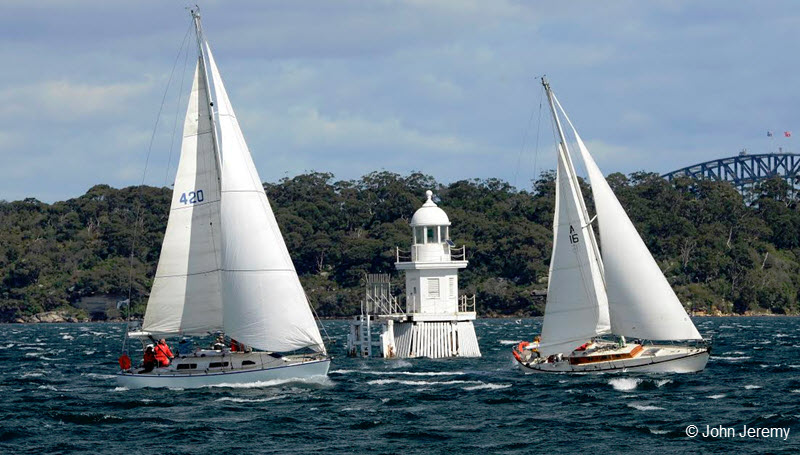 Photo: Two Admiral’s Cup-era yachts recently seen racing “hammer-and-tongs” on Sydney Harbour. Photo by John Jeremy.