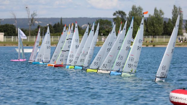 The 2017 Worlds, held May 14-20 in Pierrelatte, France, used a fixed control area format, which means you are not allowed to walk up and down the lake to get a good view of your boat. Instead competitors jockey for position in a small “bullpen” area trying to view their boat.