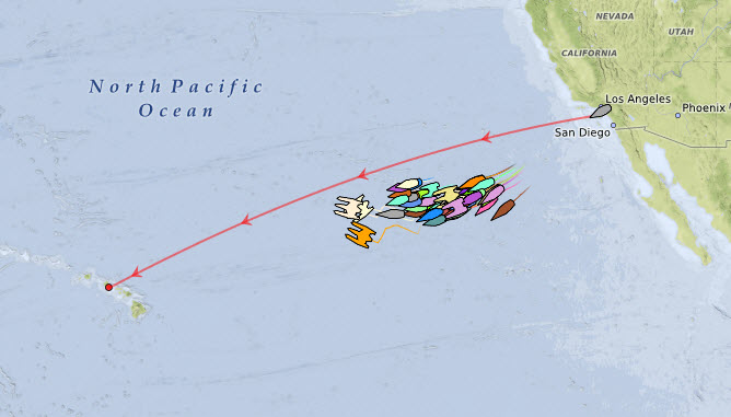Background: First organized by the Transpacific Yacht Club in 1906, the Transpacific Yacht Race or Transpac is an offshore sailing race from Point Fermin in Los Angeles to Diamond Head, just east of Honolulu, a distance of 2225 miles. The 2017 edition attracted 55 entrants that will have staggered starts on July 3, 5, and 6.